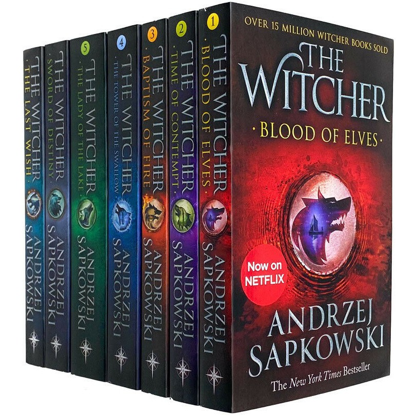 Witcher series by andrzej sapkowski 8 books collection set netflix (the last wish, sword of destiny, blood of elves, time of contempt, baptism of fire & seasons of storm).
